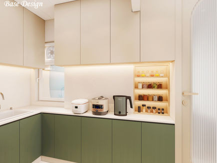 • 偷洗手間新門旁位置做薄身收納櫃,放調味料、即食麵、罐頭、乾貨海味等等,打開櫃門一目了然~