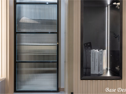 隱藏於木色條紋牆的房門更不顯突兀,線條的美感得以完整呈現。