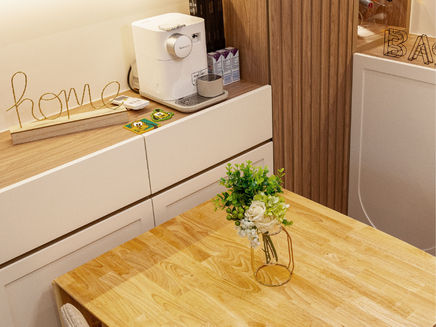 單位採用日式休閒設計,主打精簡實用。傢俬設計不單止提供充足儲物量,也十分慳位,為單位保留大量空間感,令到空間格外闊落。