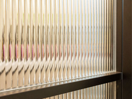 廚房設計了成面的吊櫃和地櫃,大大增加儲物空間。由於廚房較為狹長,又多櫃,為避免壓迫,除了櫃身用色較淺,廚房門也使用長虹玻璃打造,方便將客廳的光透入廚房。