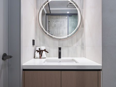 主人房套廁門同樣用以長虹玻璃,把光線引入浴室,通透明亮。