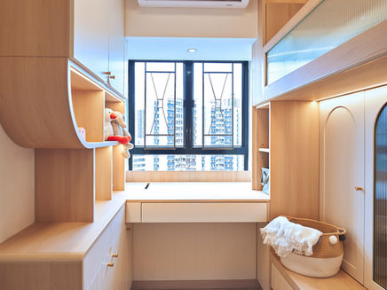 書桌設於窗邊窗台書枱,引入充足的自然光線,让空間更加通透明亮,開闊,能提供給孩子更好的學習視野。